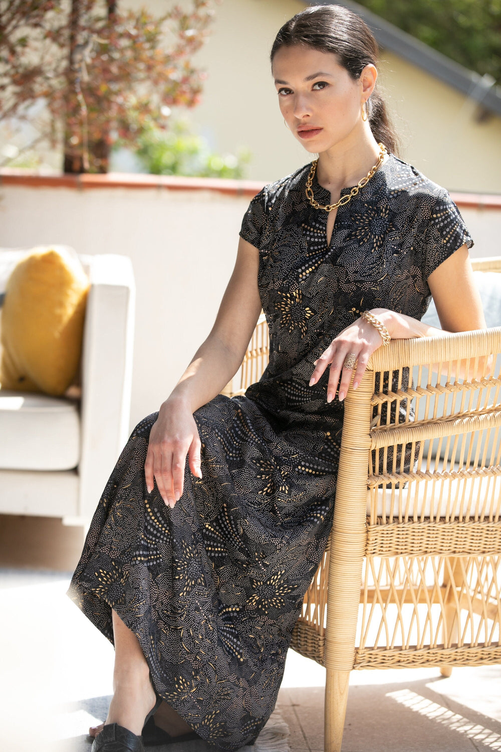 Elegant and lightweight, this kaftan maxi dress is inspired by the Moroccan Galabeya.