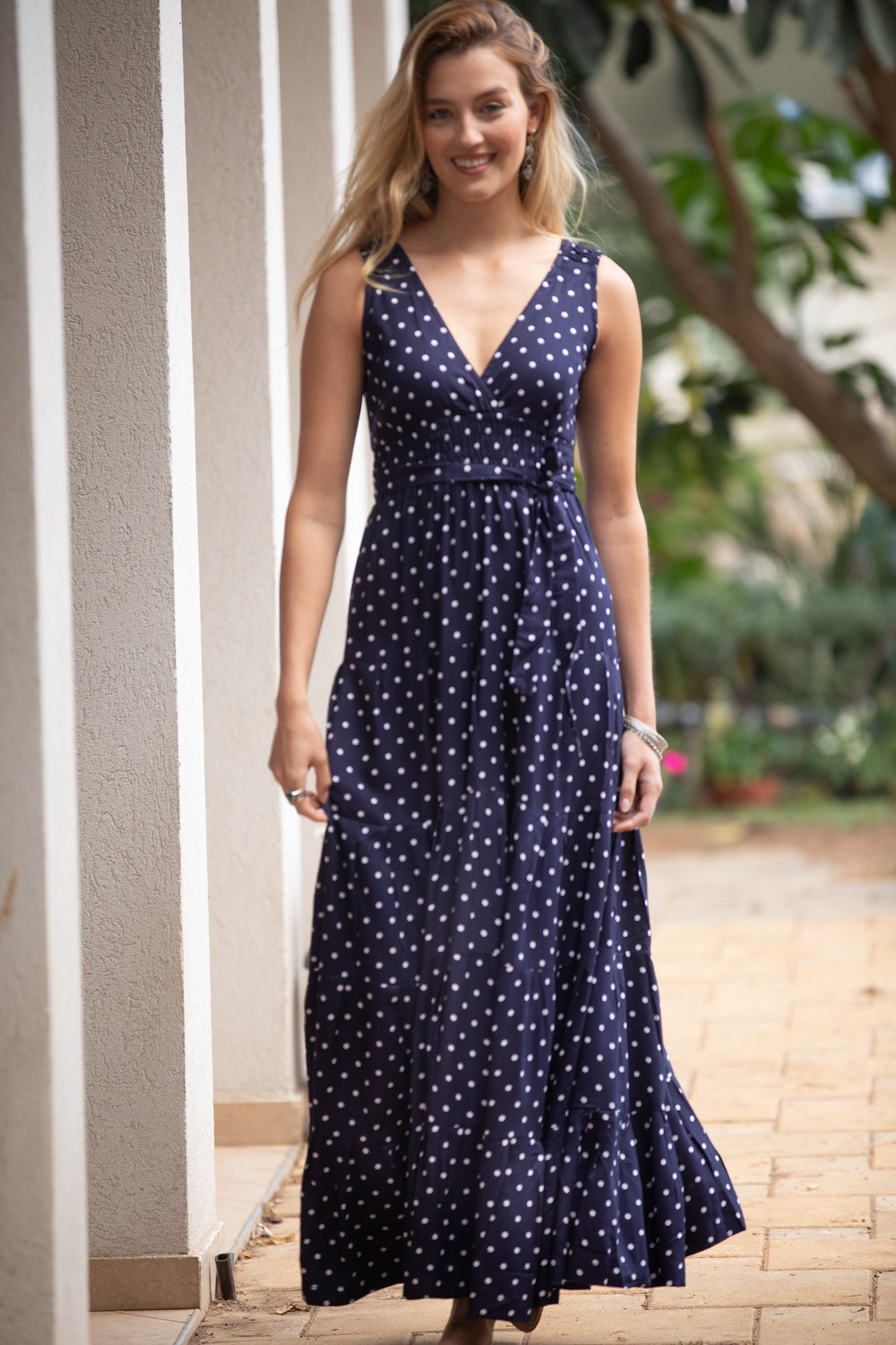 Carrie Dress - Polka Dot Navy Blue